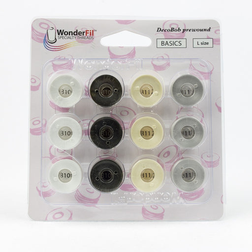 DecoBob Prewound Bobbins Size L 12ct Black White Cream Grey